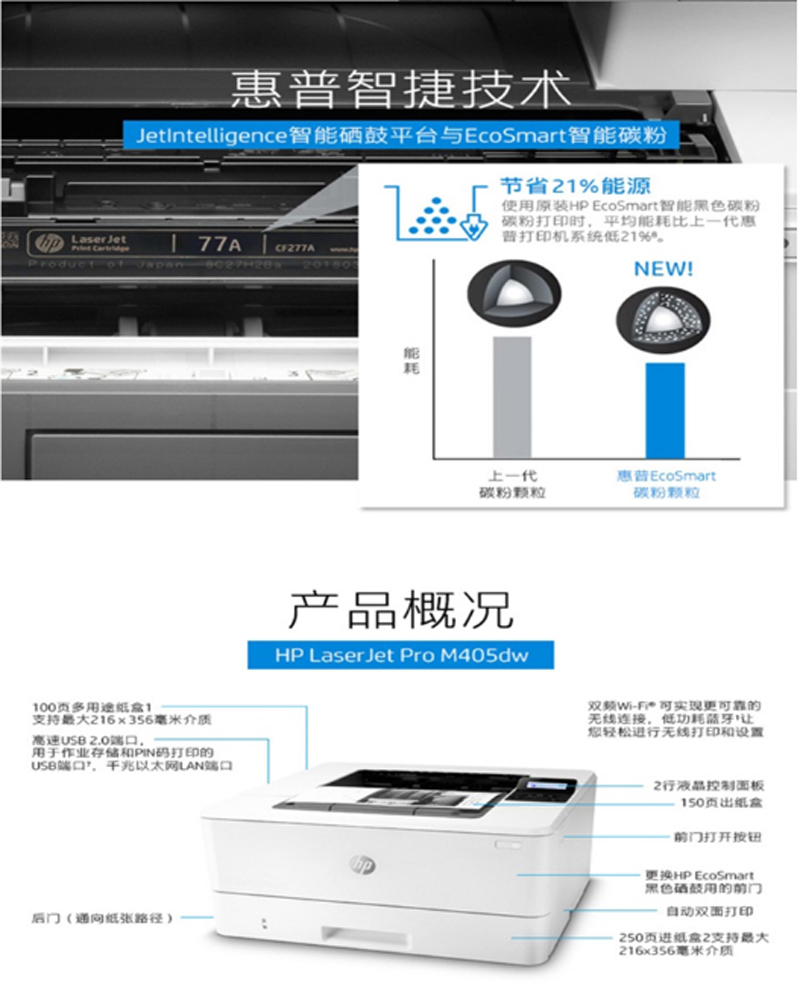 商品名称:惠普(HP)LaserJet Pro M405dw 黑白激光打印机