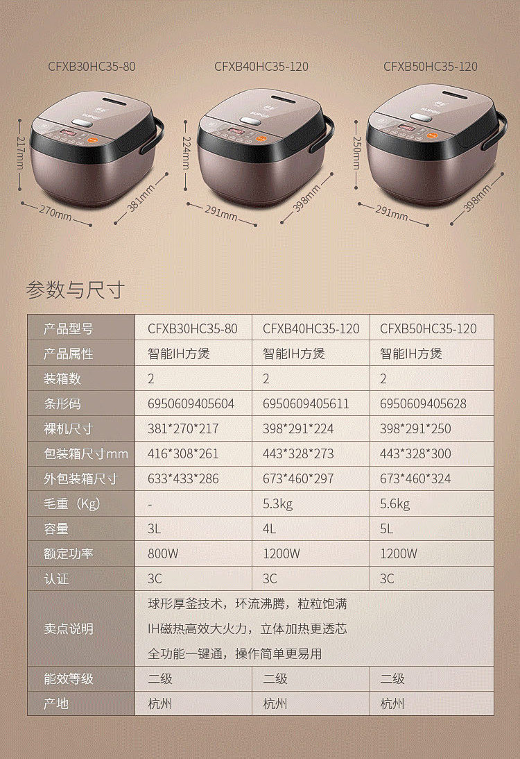 商品名称:苏泊尔/SUPOR 智能电饭煲 CFXB50HC35-120