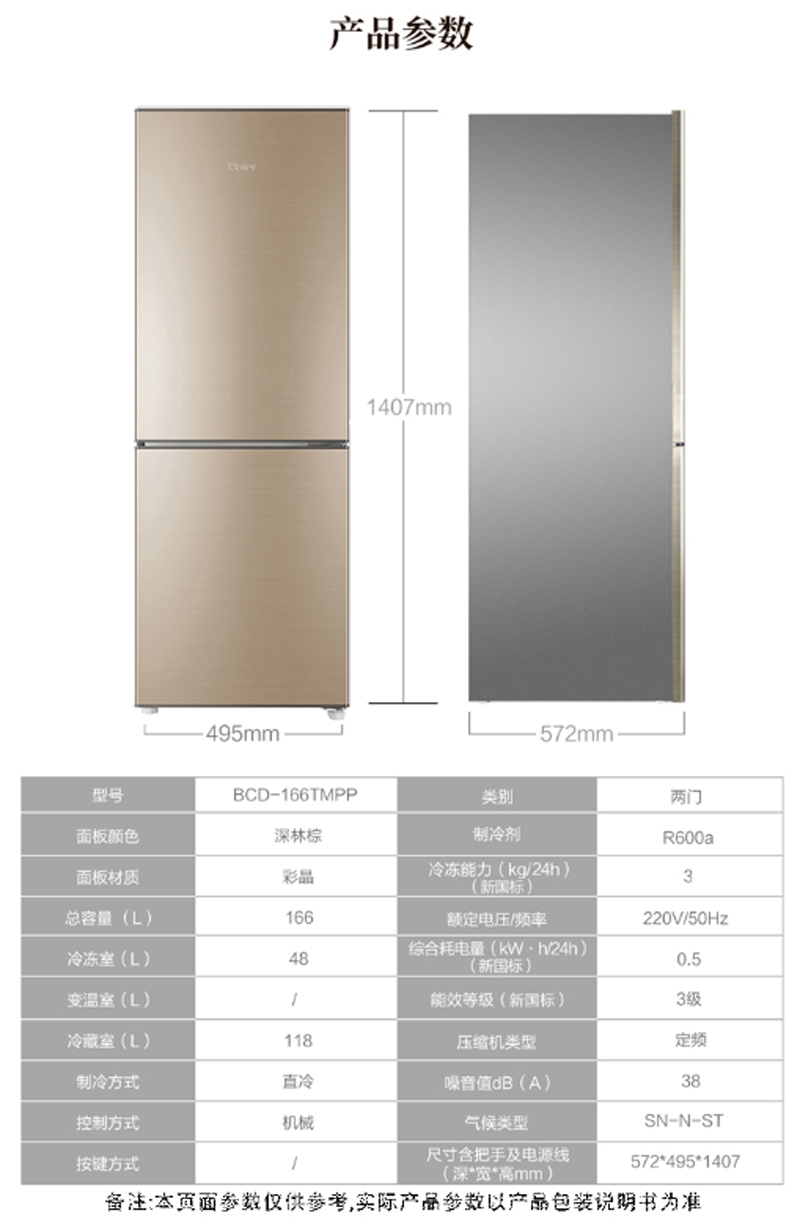 型号:海尔(Haier) BCD-166TMPP