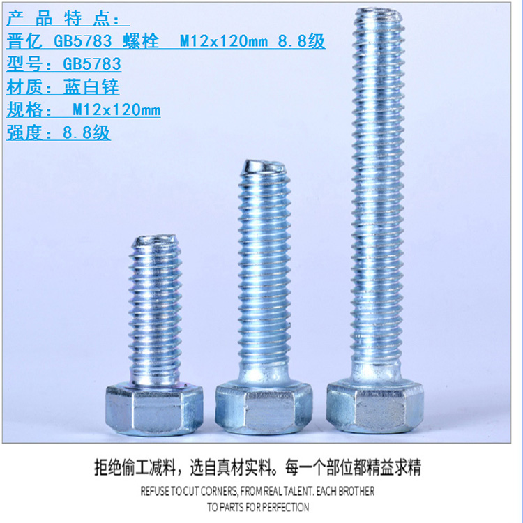 商品名称:国产 螺栓 M12x120mm 8.8级(单位:个) GB5783