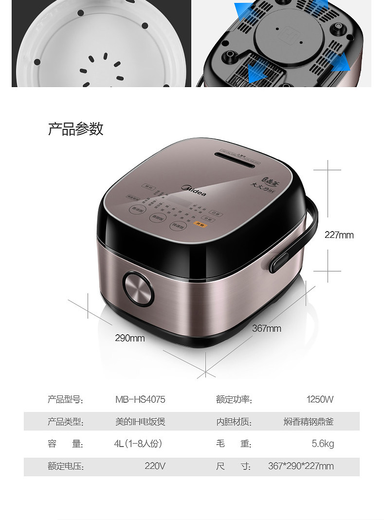 商品名称:美的/Midea 4L 电饭煲 MB-HS4075