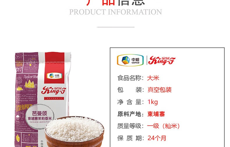 商品名称:中粮 金花芭曼颂柬埔寨茉莉香米 1kg