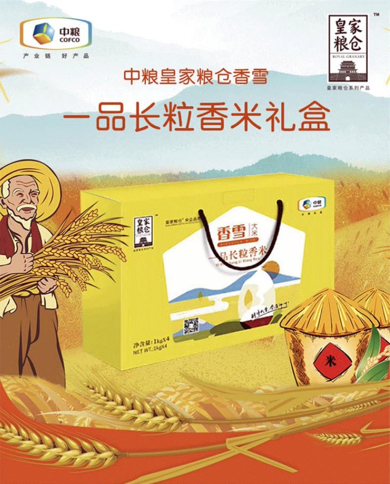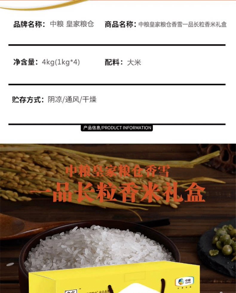 商品名称:中粮 皇家粮仓香雪一品长粒香米礼盒 4kg