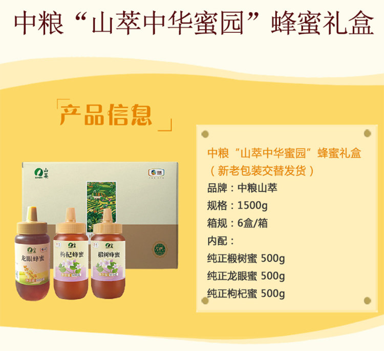 商品名称:中粮“山萃中华蜜园”蜂蜜礼盒 1500g