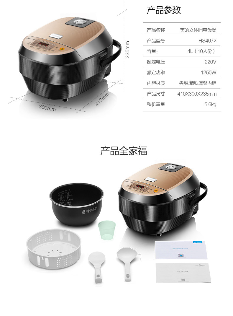 商品名称:美的/Midea 4L 电饭煲 MB-HS4072