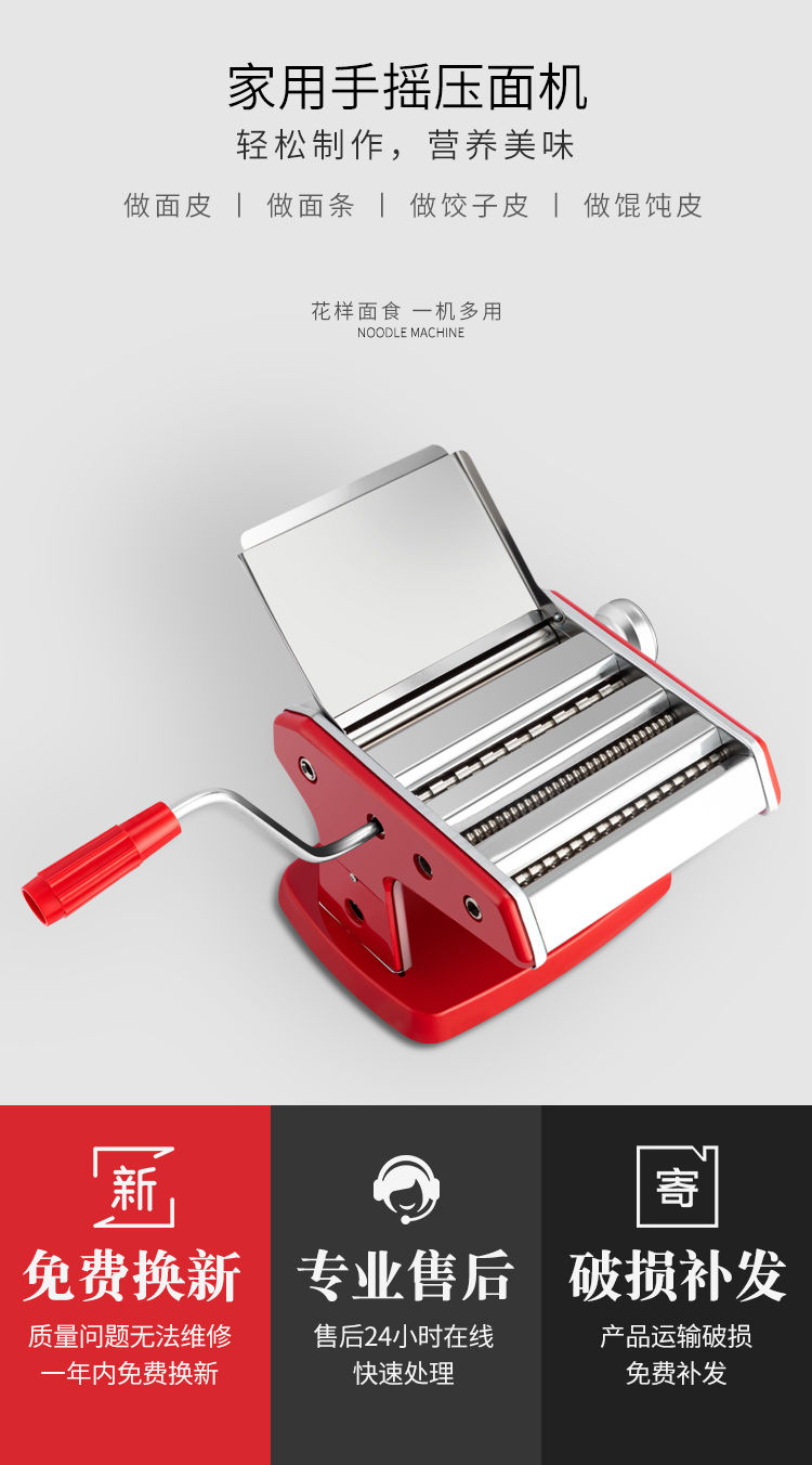 商品名称:妙媳妇 手动压面机小型不锈钢面条机擀面皮厨房饺子馄饨皮多功能