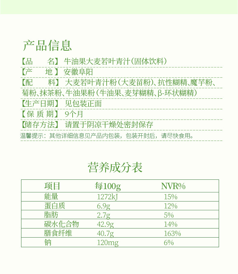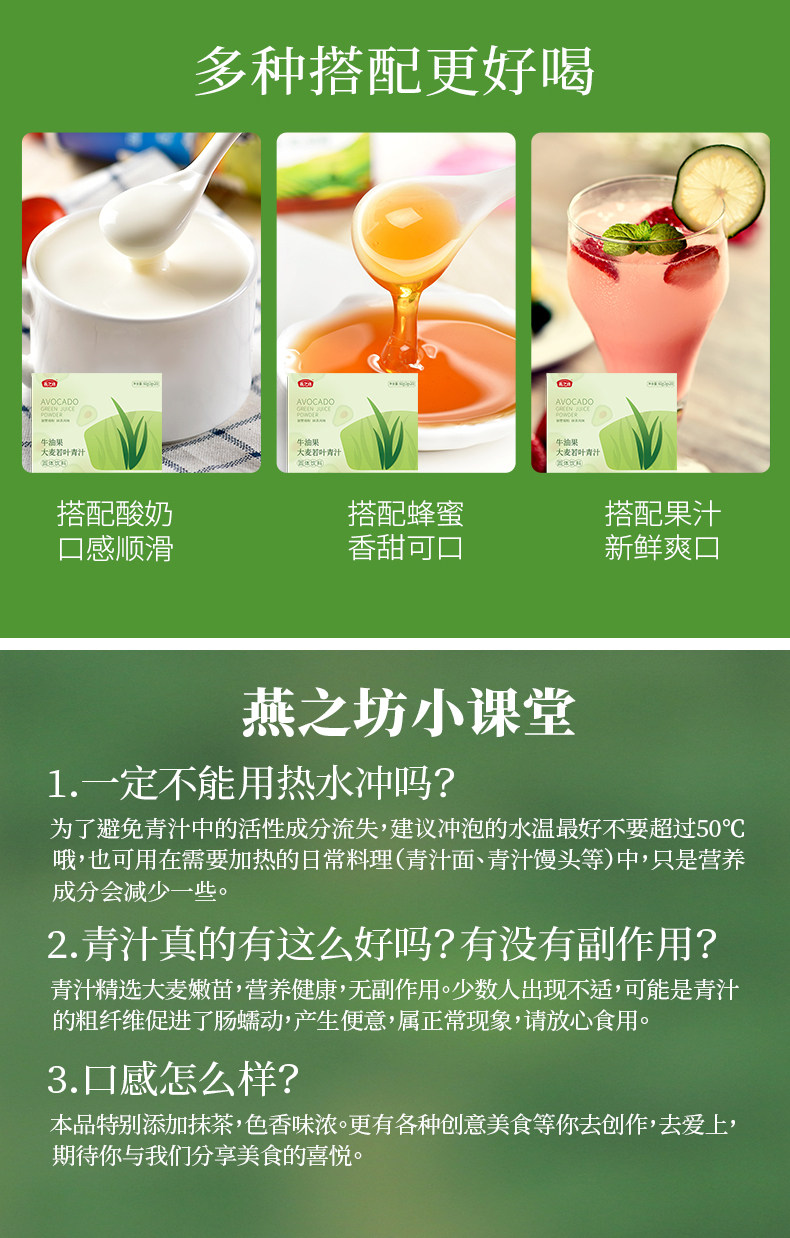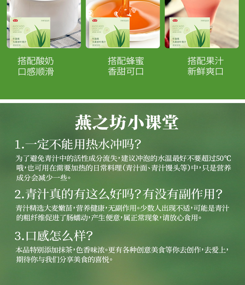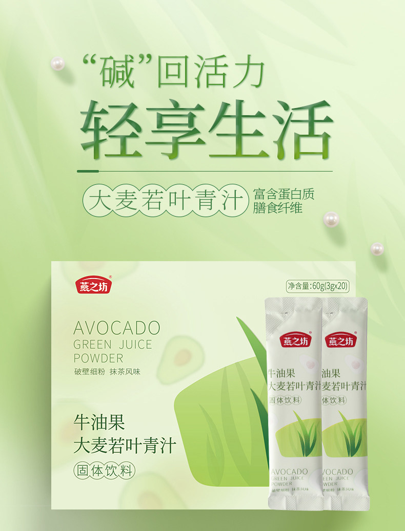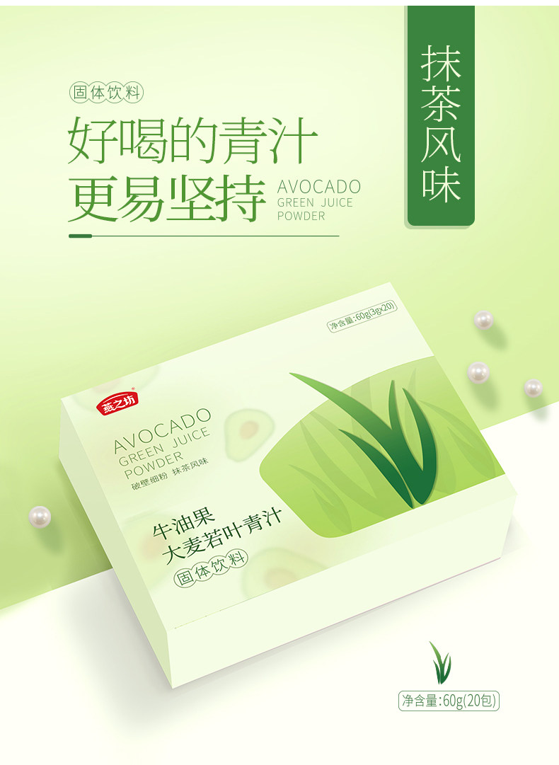 商品名称:燕之坊 牛油果大麦若叶青汁(固体饮料)60g*2盒