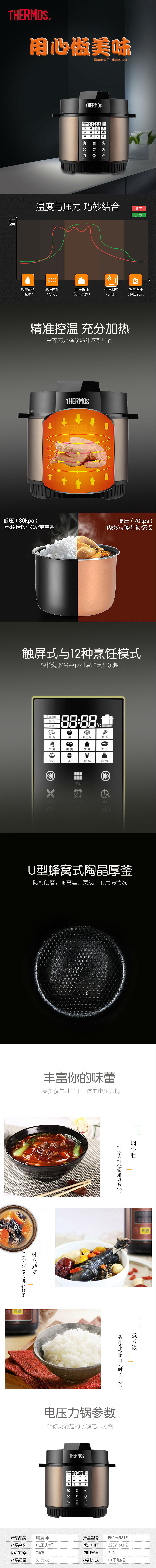 商品名称:膳魔师 电压力锅 EHA-4531E