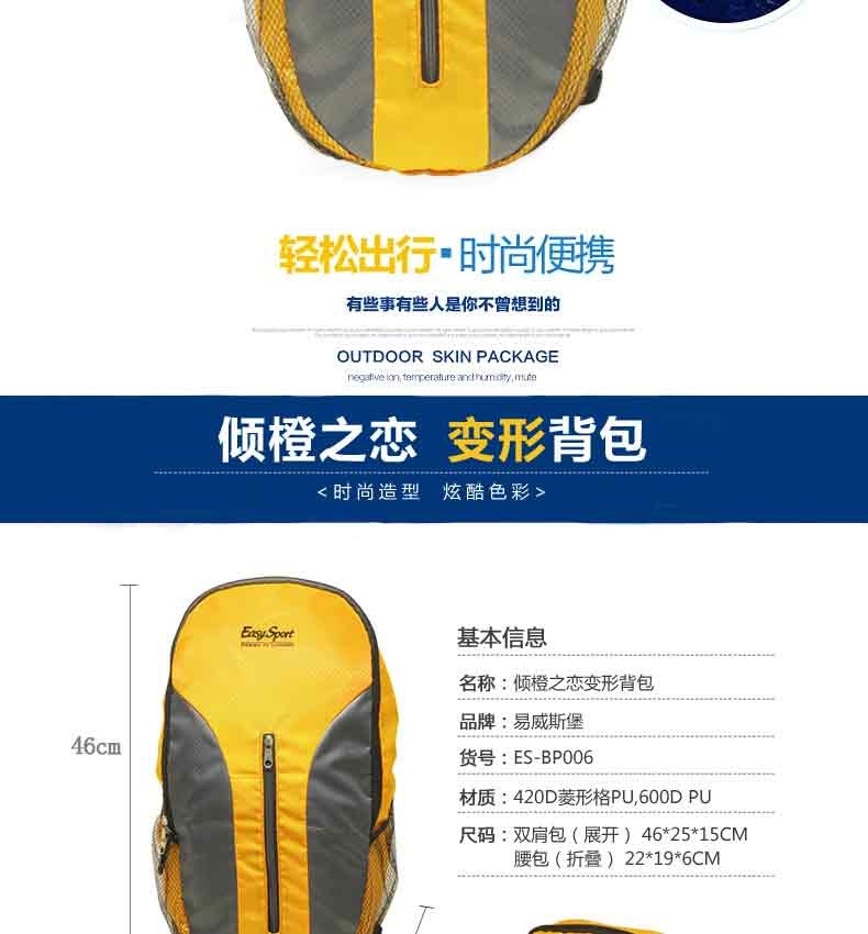 商品名称:易威斯堡 大黄蜂变形背包 ES-BP007