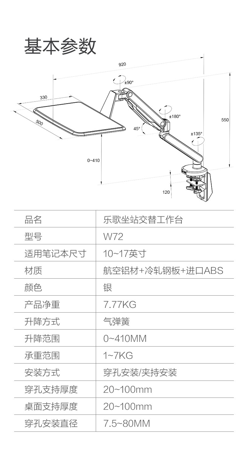 商品名称:乐歌/Loctek 坐立交互笔记本支架 黑色 W72