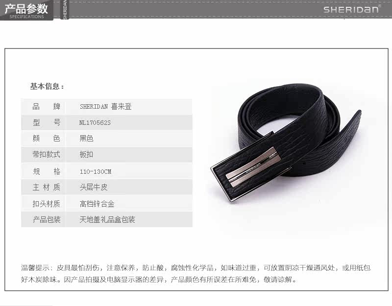 商品名称:喜来登 皮带 男士头层牛皮商务皮带 NL170562S