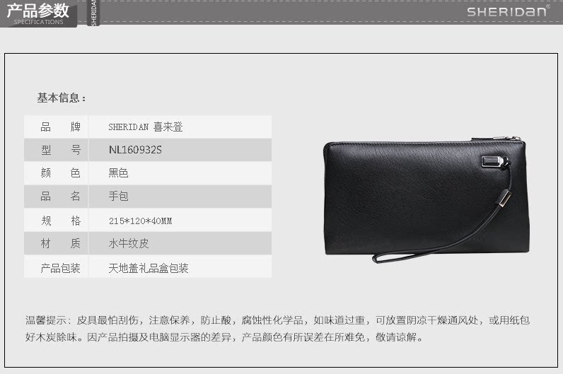 商品名称:喜来登 长款钱包男士真皮拉链钱夹牛皮包手包 NL160932S