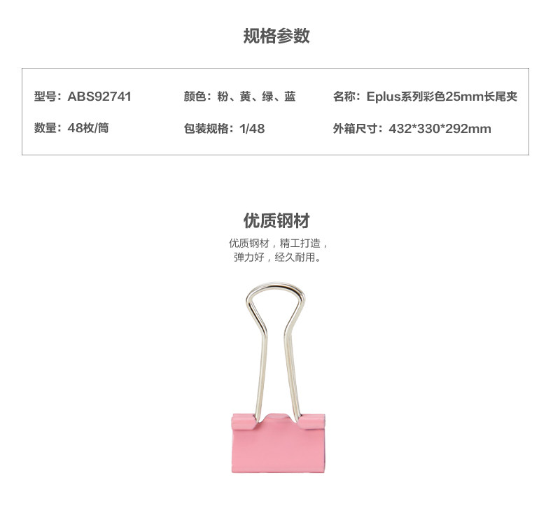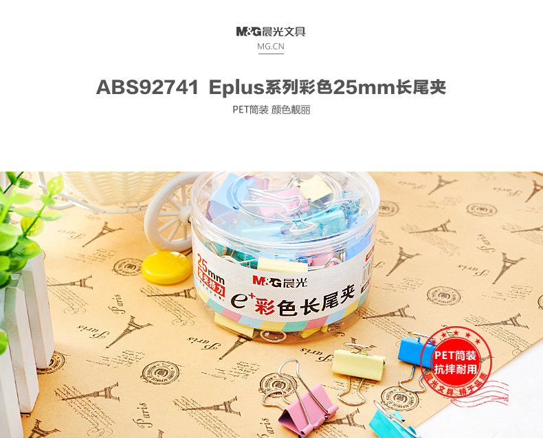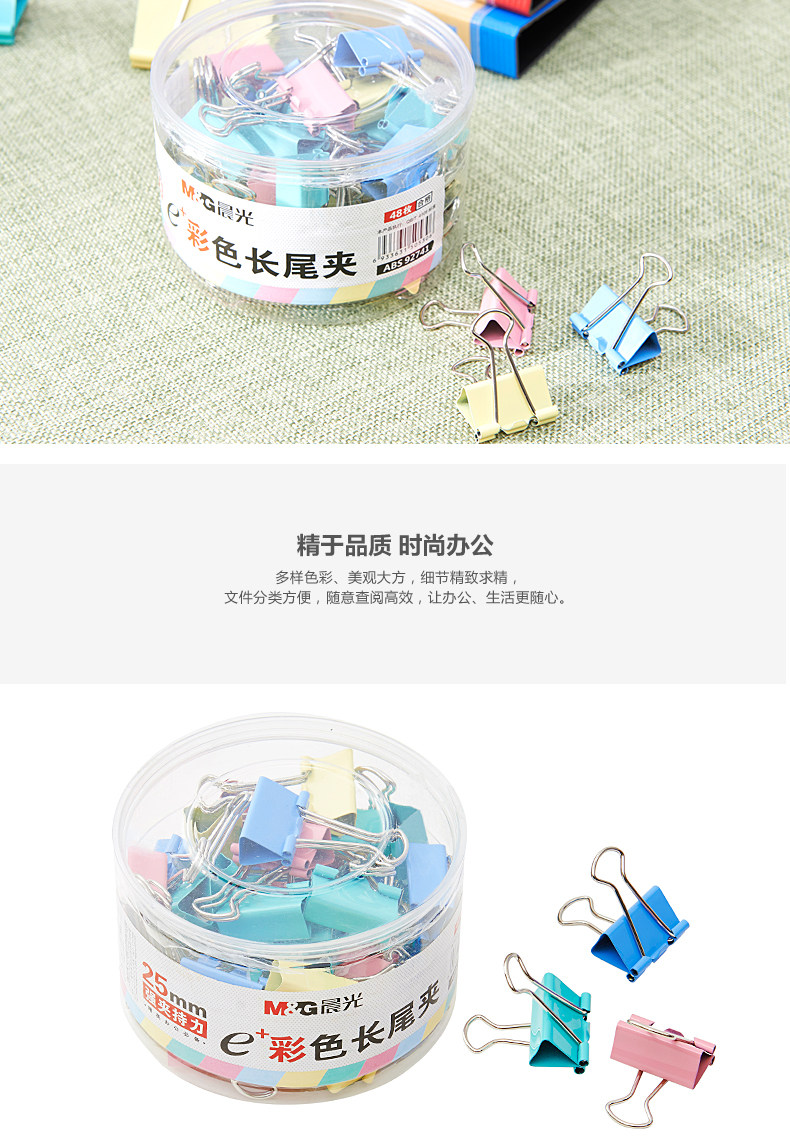 商品名称:晨光/M&G 25mm 长尾夹 48只/筒 彩色 ABS92741
