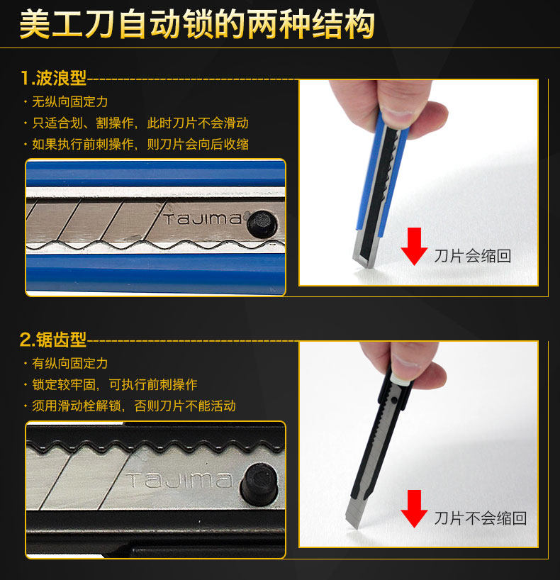 田岛(TaJIma)大号18mm宽美工刀壁纸刀墙纸刀推纽自动锁定LC500B 1101-0009