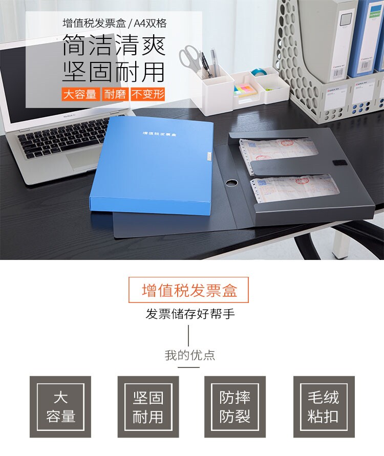 商品名称:齐心 A4 双格 增值税发票盒 深灰 A1246