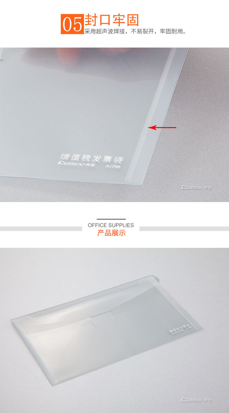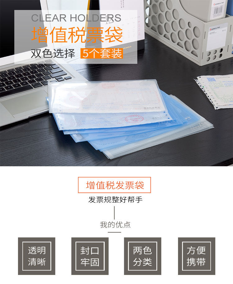 商品名称:齐心 增值税发票袋 透明蓝 A1768