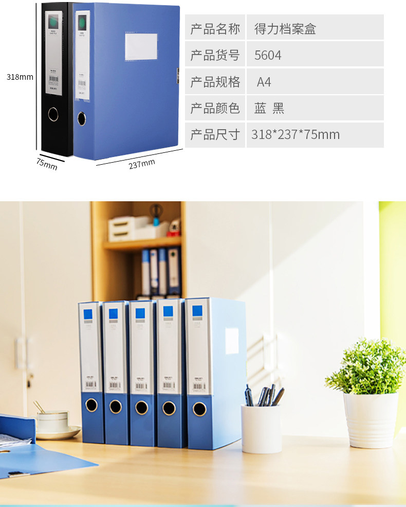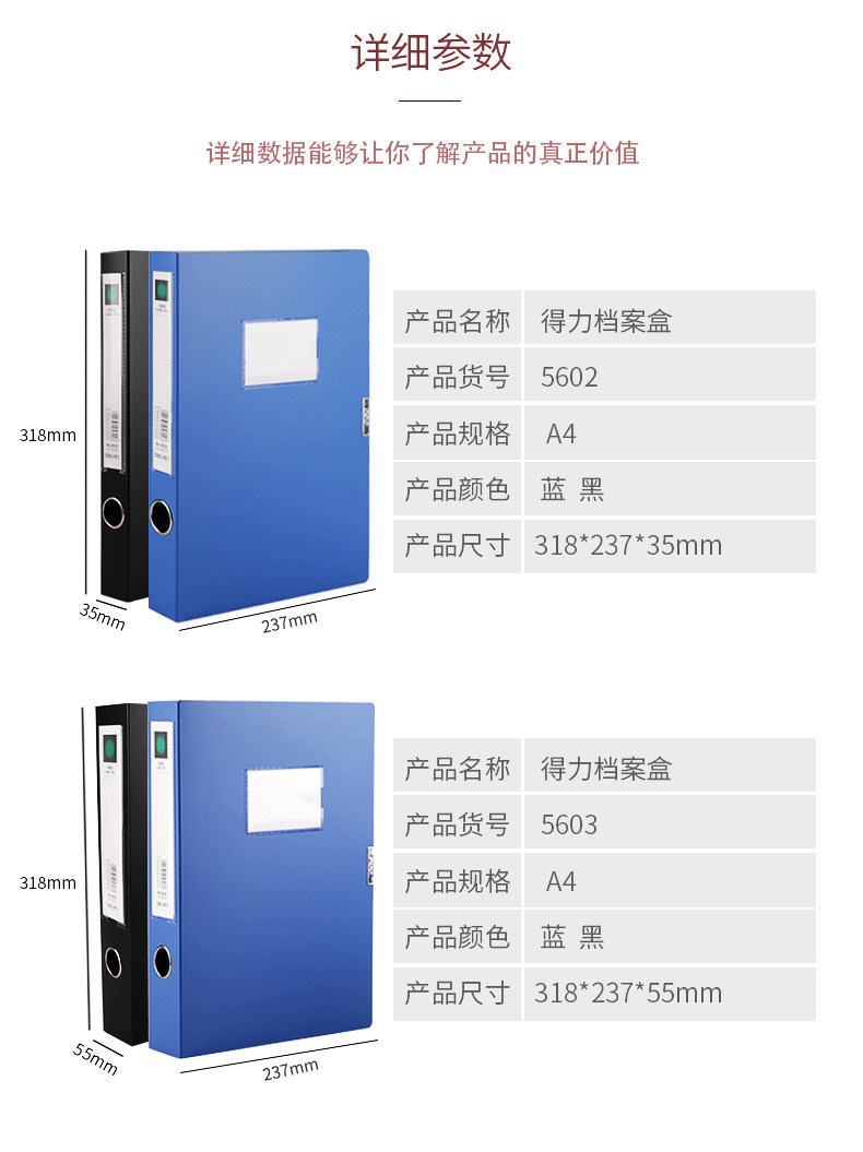 商品名称:得力 A4档案盒 5603