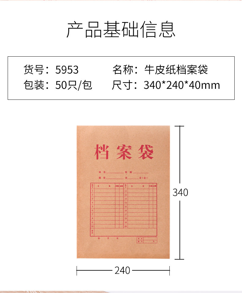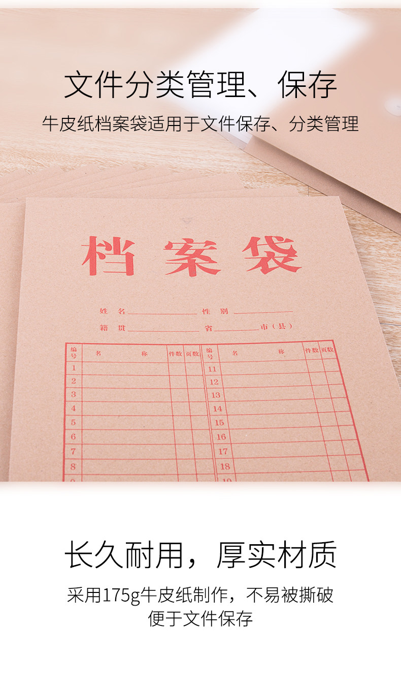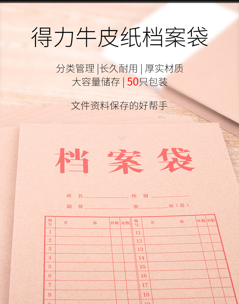 商品名称:得力/deli A4 牛皮纸档案袋 牛皮纸色