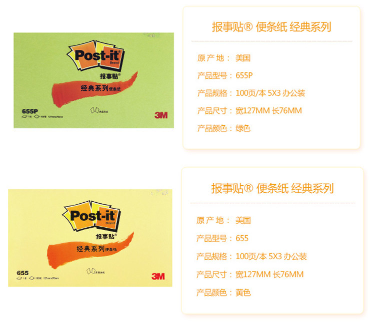 商品名称:3M 127*76mm 报事贴 绿色 655P