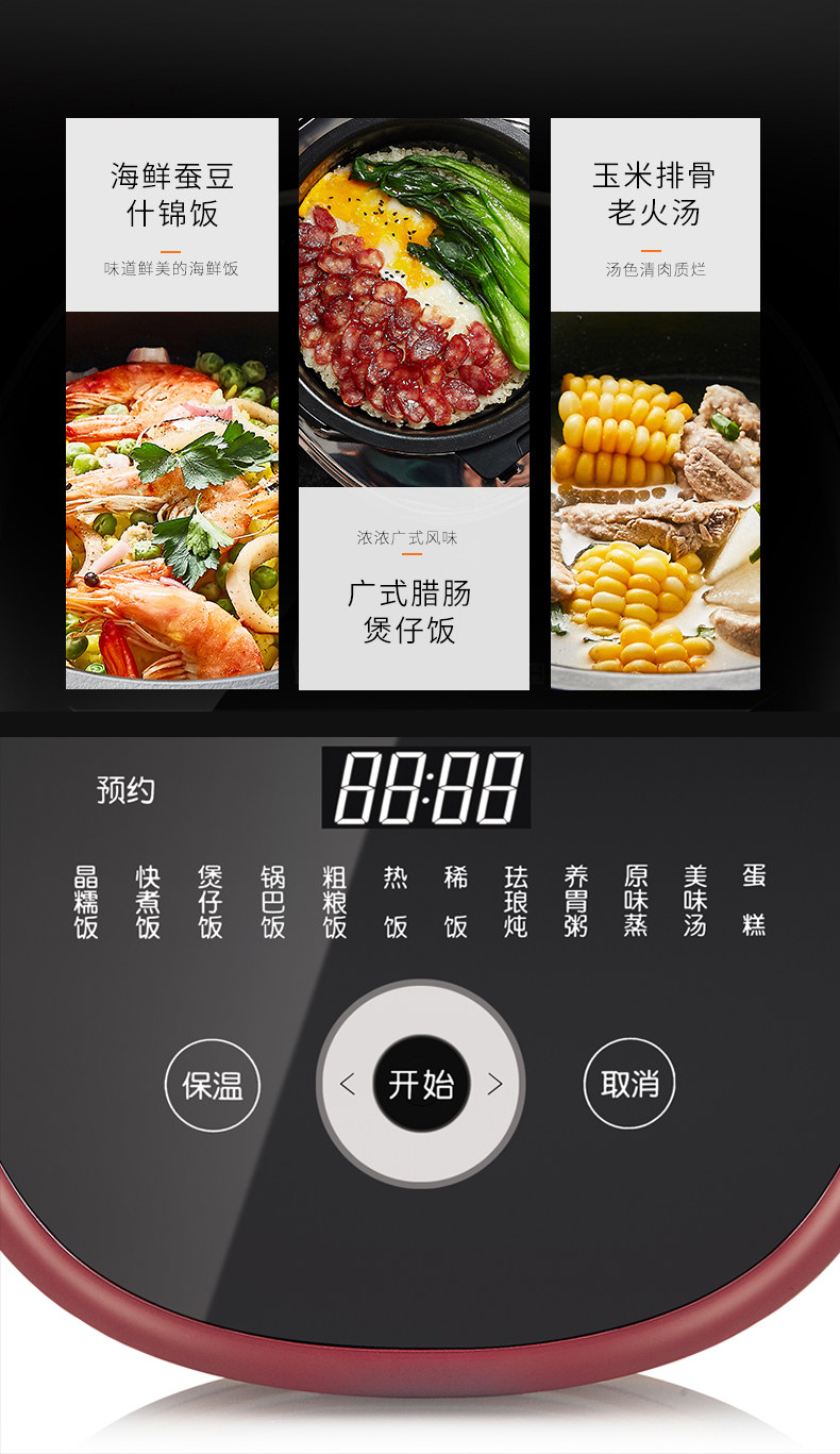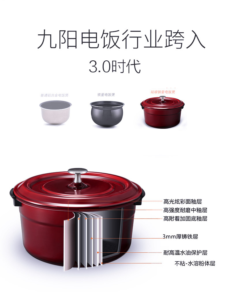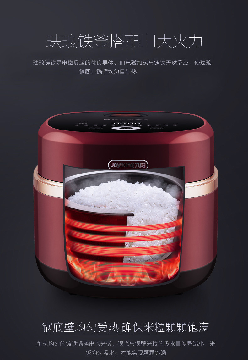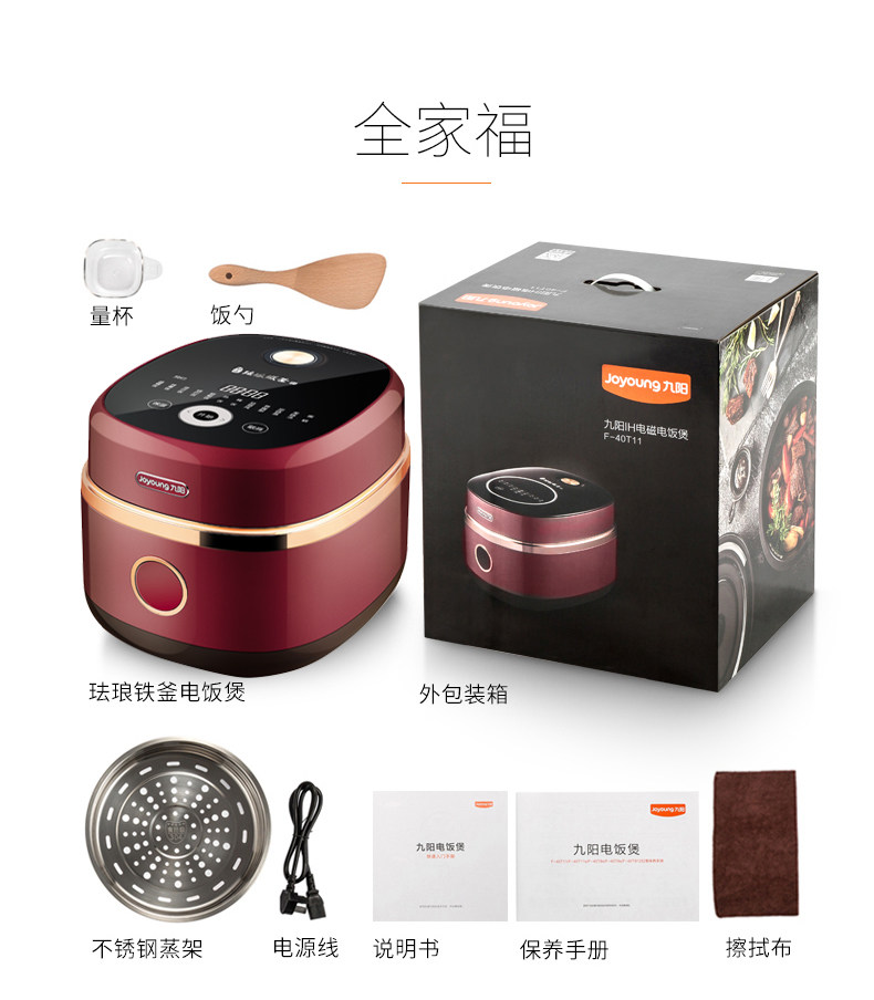商品名称:九阳 煲珐琅铁釜内胆4L多功能IH加热电饭锅 红色 F-40T11S