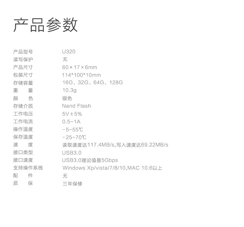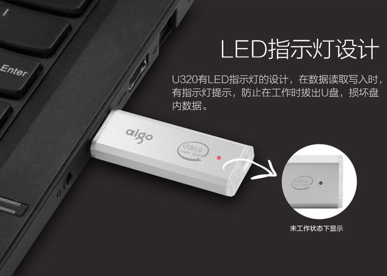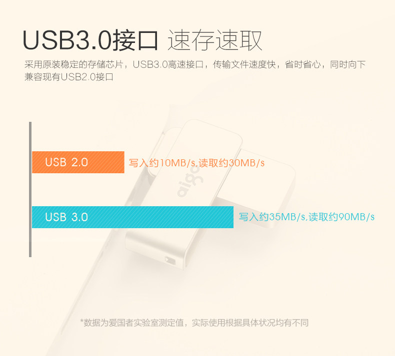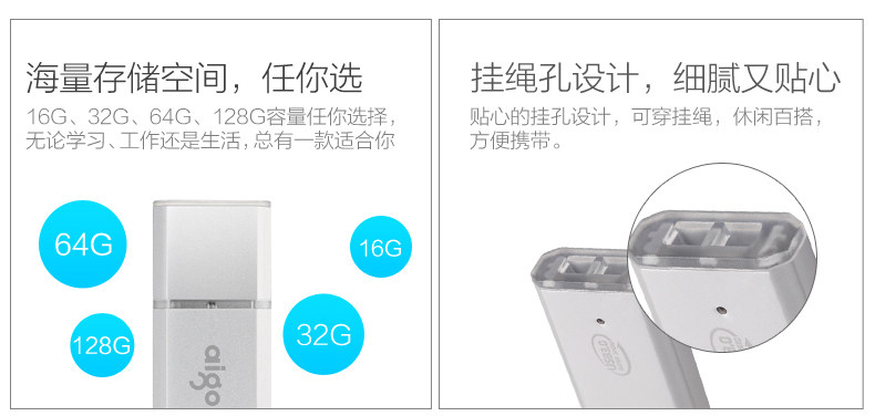 商品名称:爱国者(aigo) 64GB USB3.0 高速优盘/U盘 银色 U320