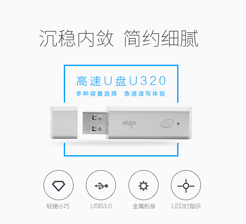 爱国者(aigo) 64GB USB3.0 高速优盘/U盘 银色 U320