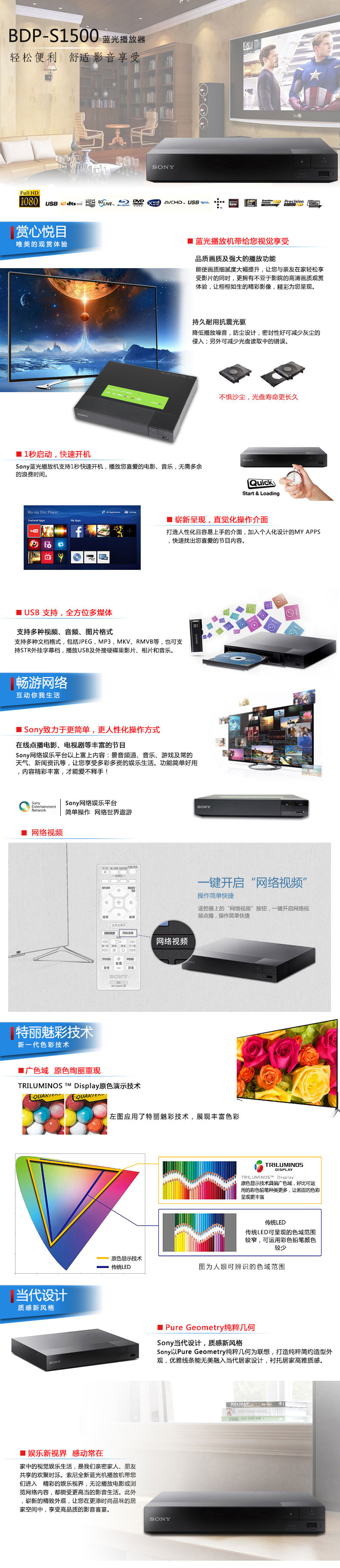 商品名称:索尼(SONY)蓝光DVD 支持USB播放 支持网络视频 播放机 黑色 BDP-S1500