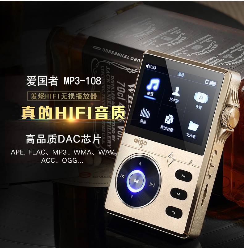 商品名称:爱国者/AIGO MP3播放器 108金色+送充电器+16G高速卡 MP3-108