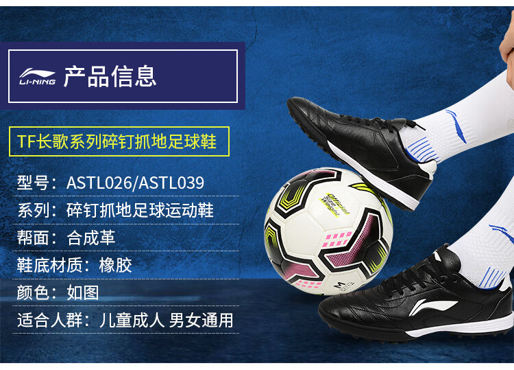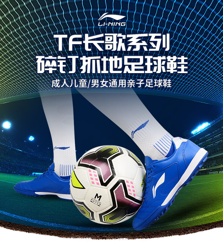 商品名称:李宁 LI-NING 足球运动鞋 耐磨碎钉TF防滑足球鞋男款 蓝 42码 ASTL039-3