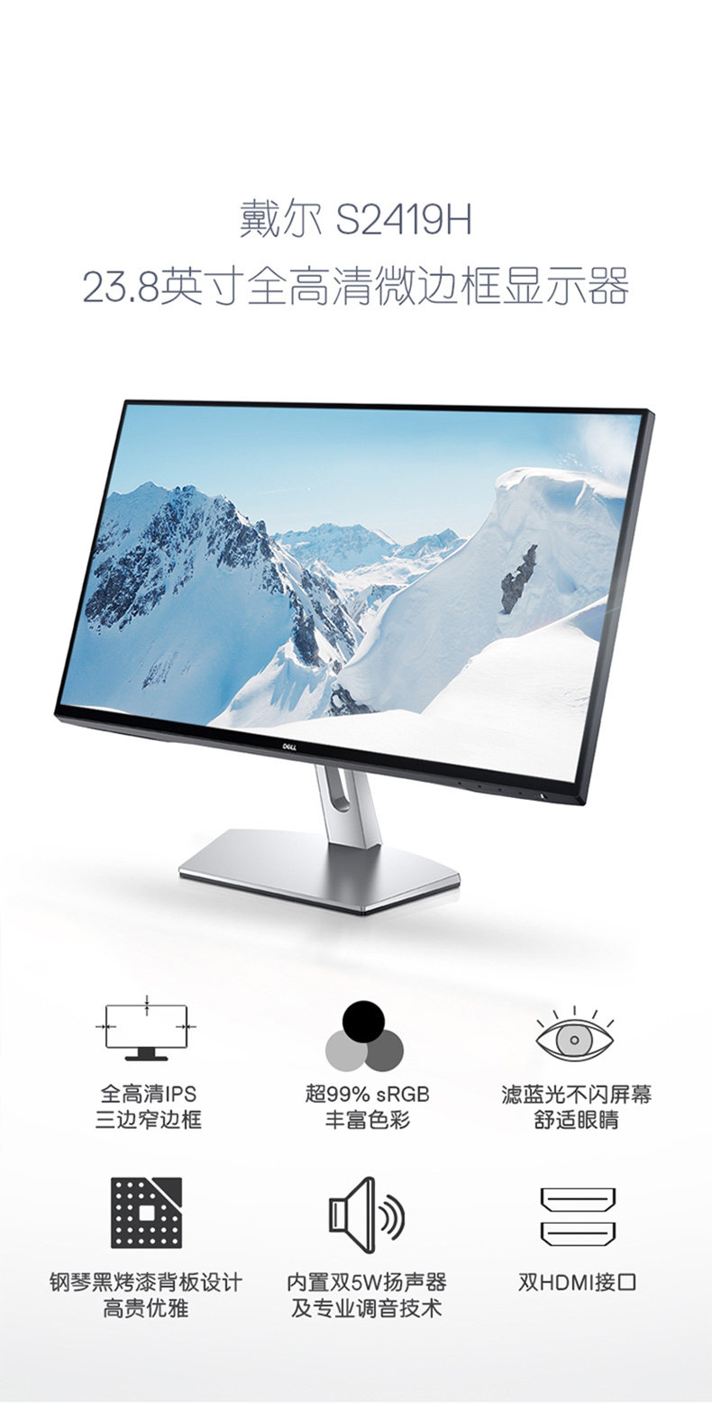 戴尔( DELL) S2419H 显示器(三边微边)23.8英寸