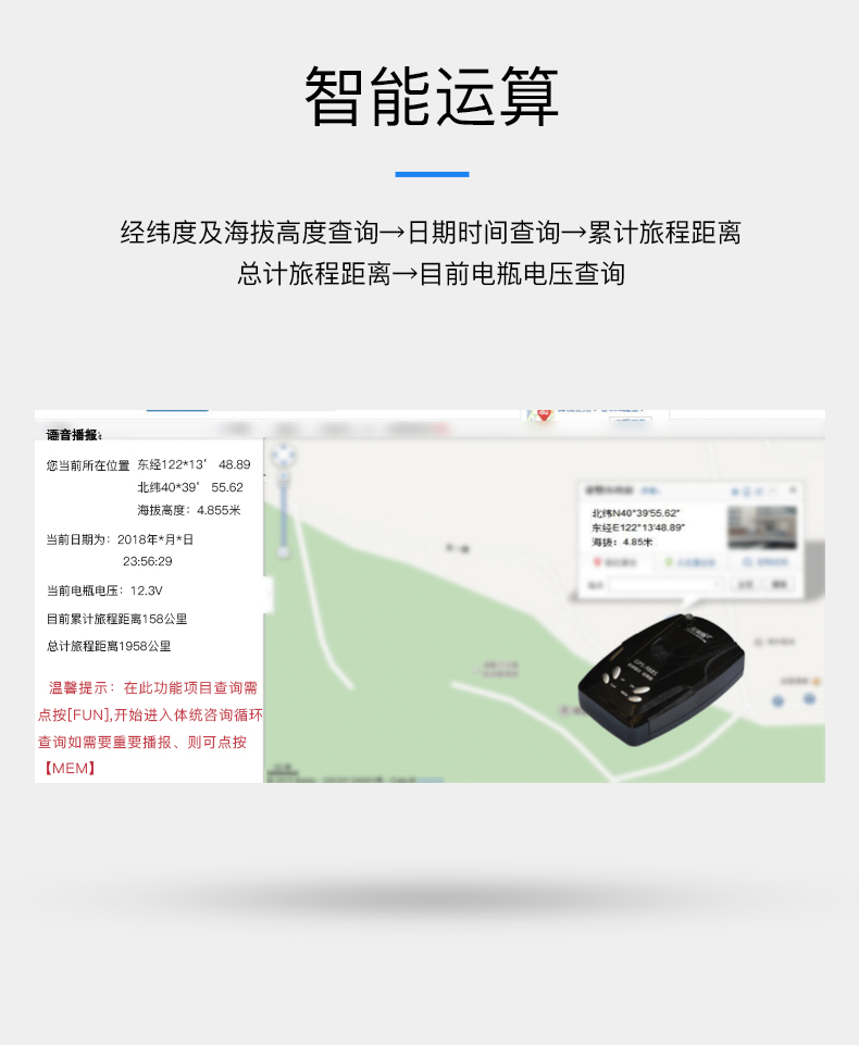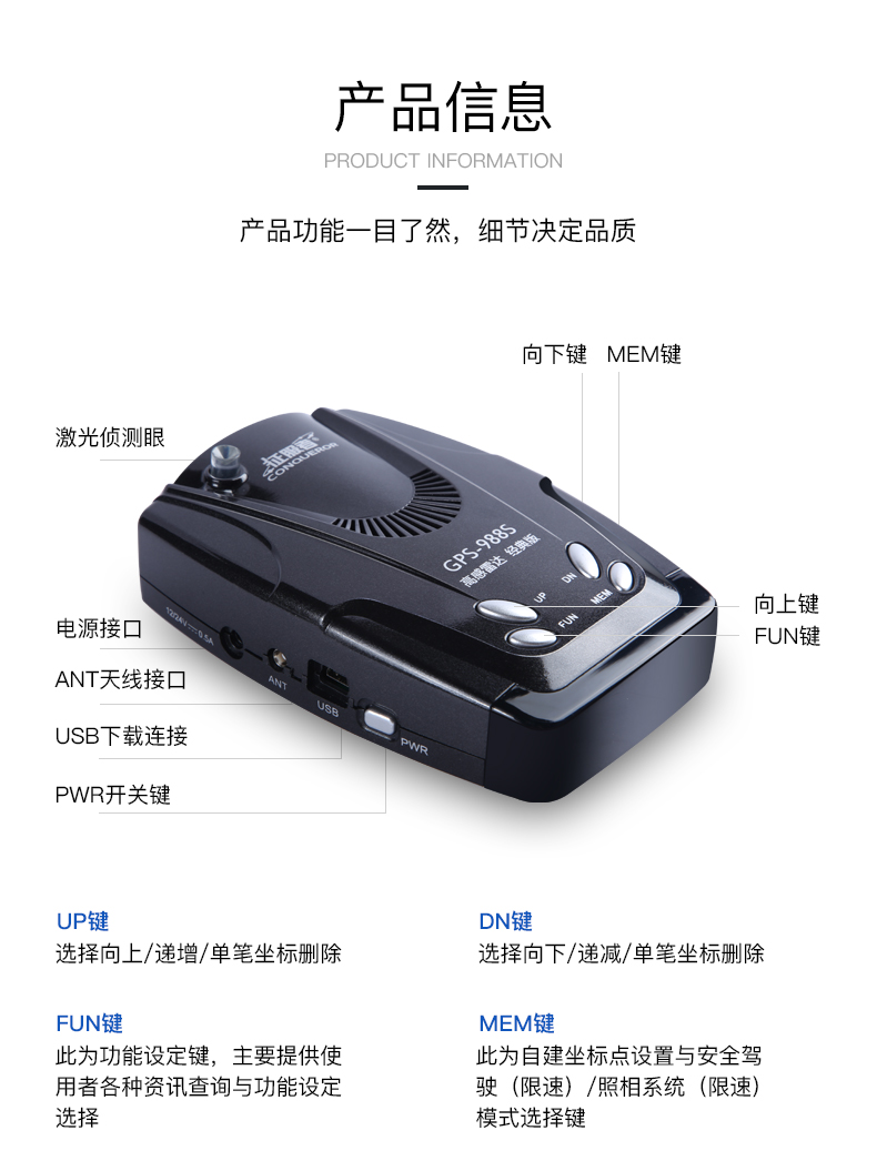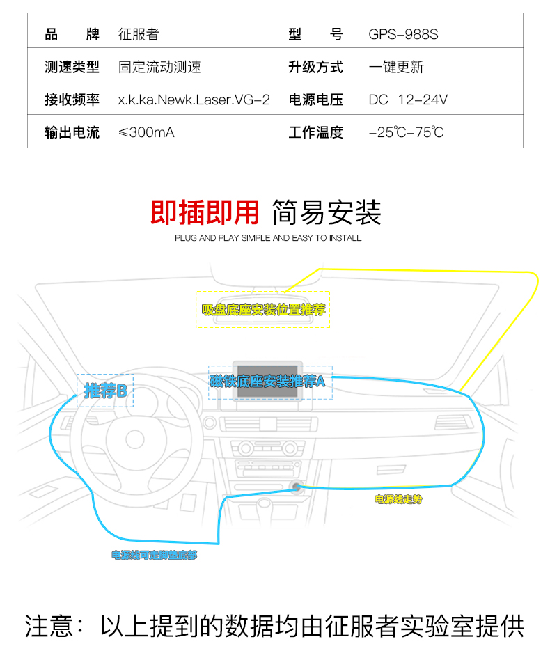 商品名称:征服者 电子狗流动固定区间测速雷达一体机雷达测速高感电子狗安全预警仪 GPS-988S