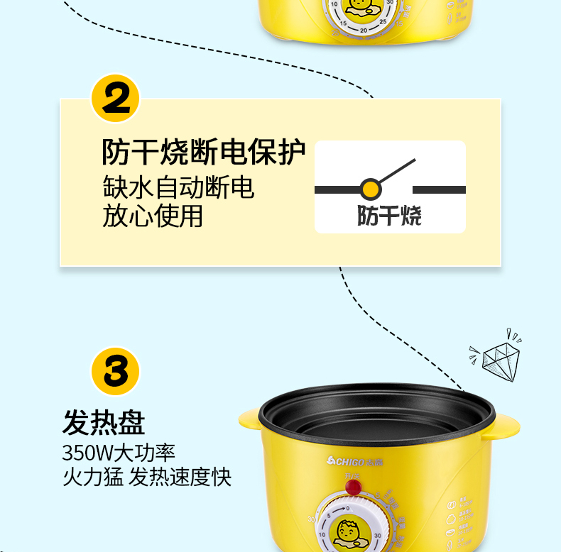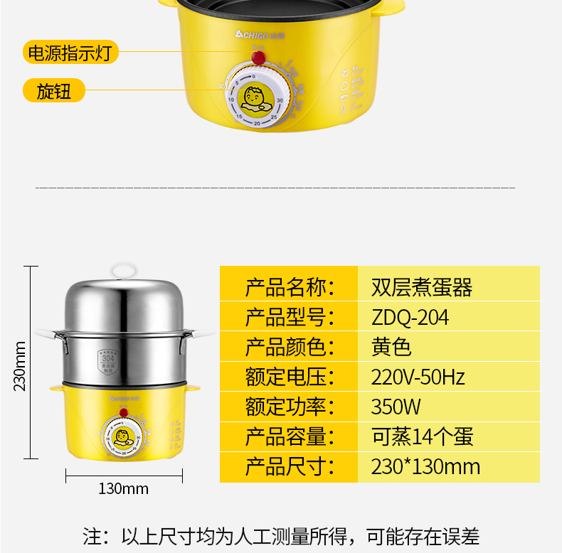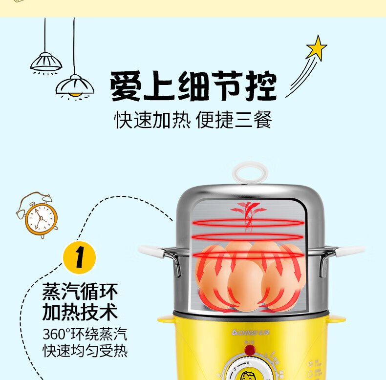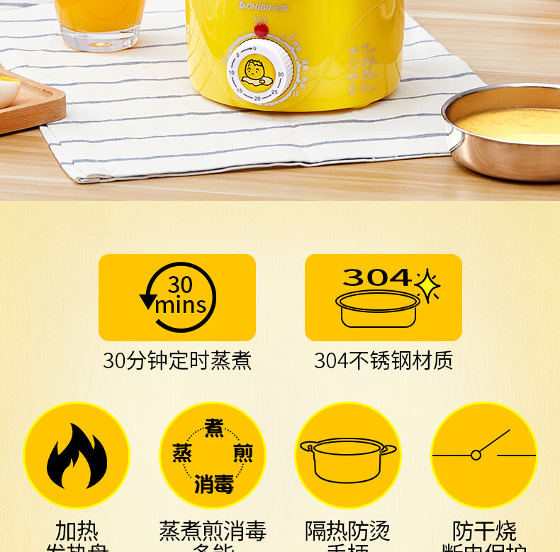 商品名称:志高 蒸蛋器煮蛋器煎蛋预约煮鸡蛋神器煮鸡蛋的锅自动断电早餐机多功能 黄色 ZDQ-204