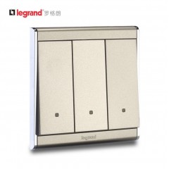 罗格朗 开关插座尚韵缎沙金86型三位双控面板 三开双控荧光