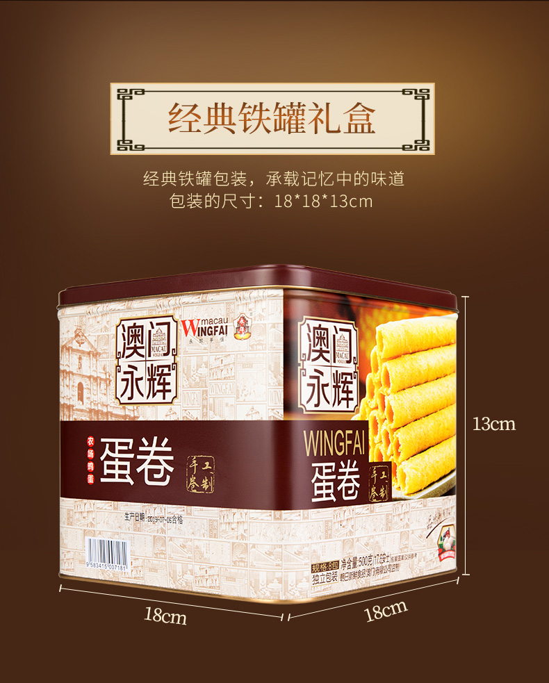 商品名称:澳门永辉酥蛋卷糕点礼盒 338g