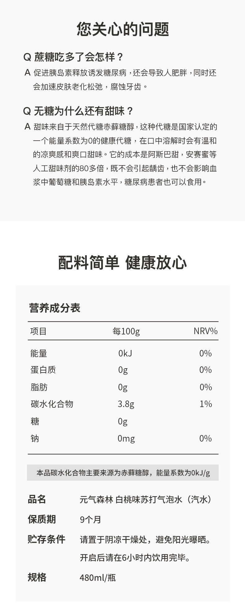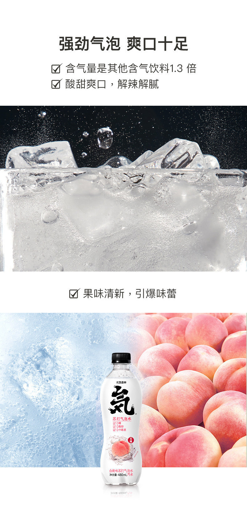 商品名称:元気森林 苏打气泡水480ML*15瓶(桃味)