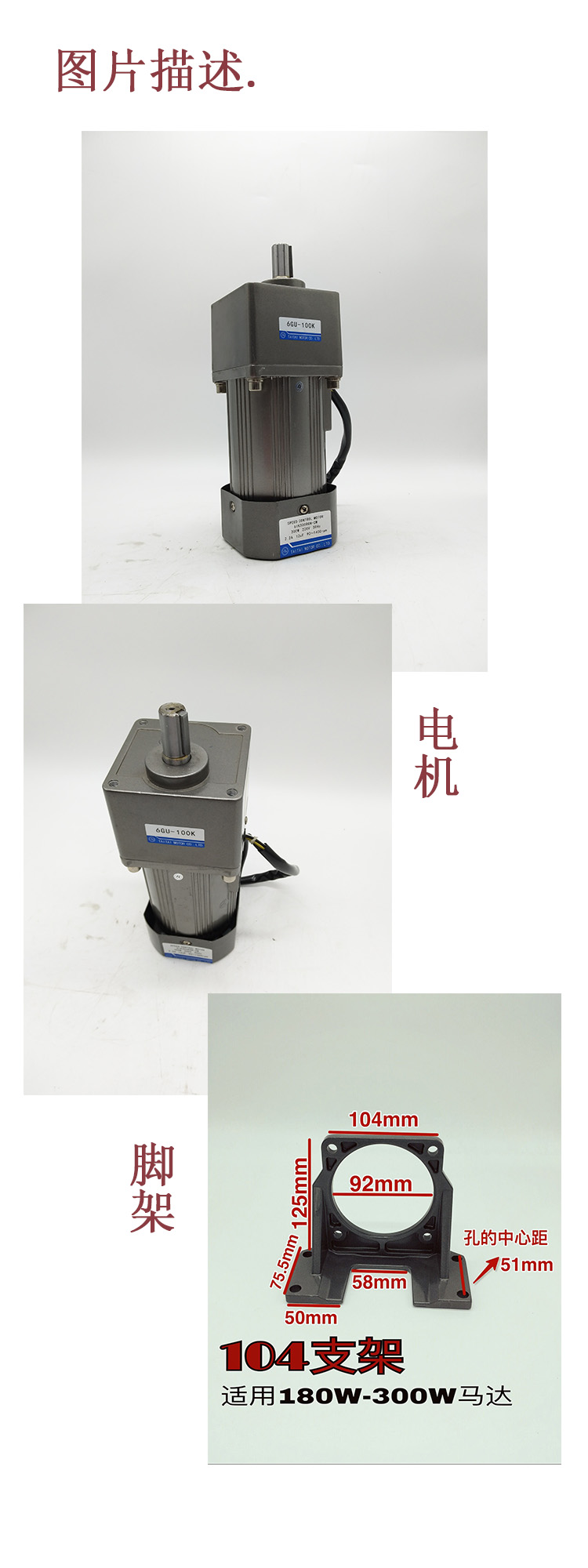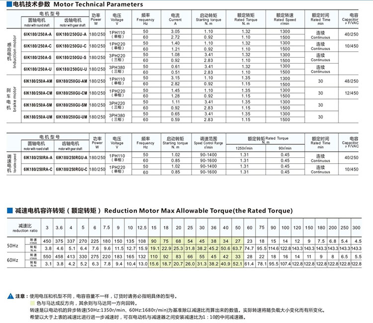 商品名称:东川 180W/250W/300W交流无极减 调速电机 减速马达 6IK250RGU