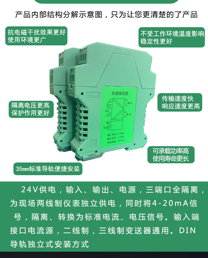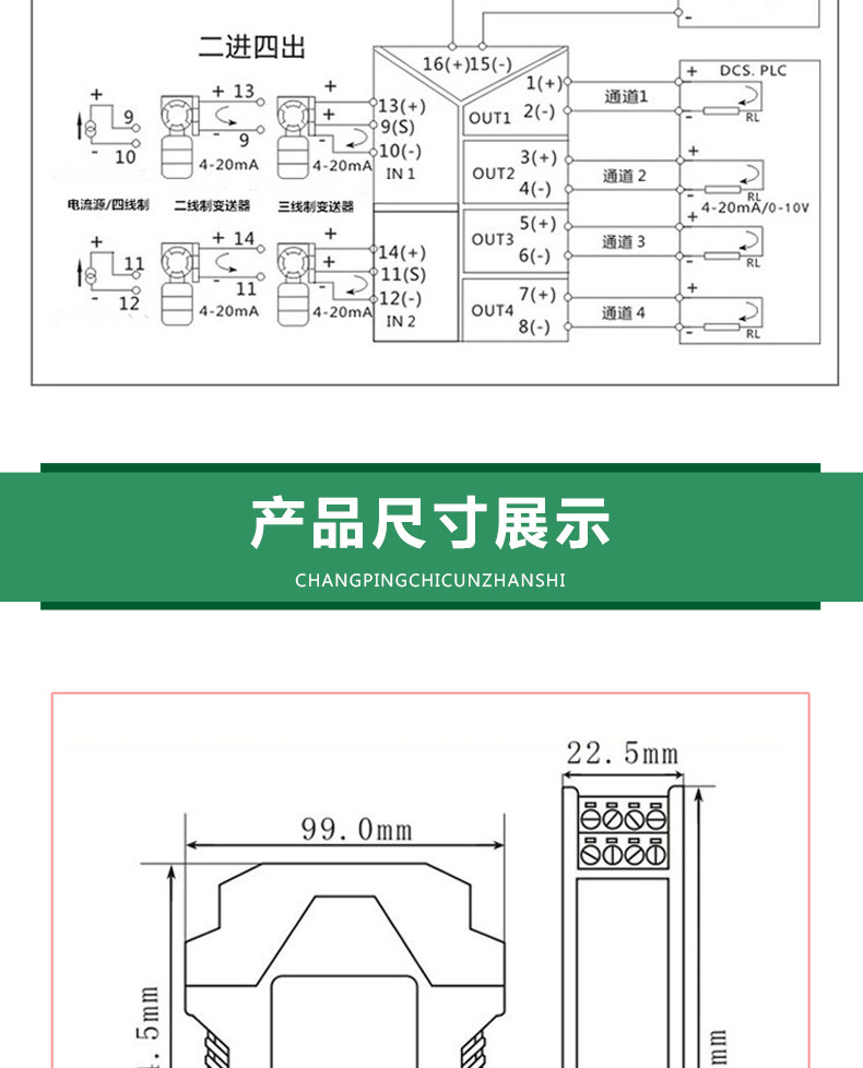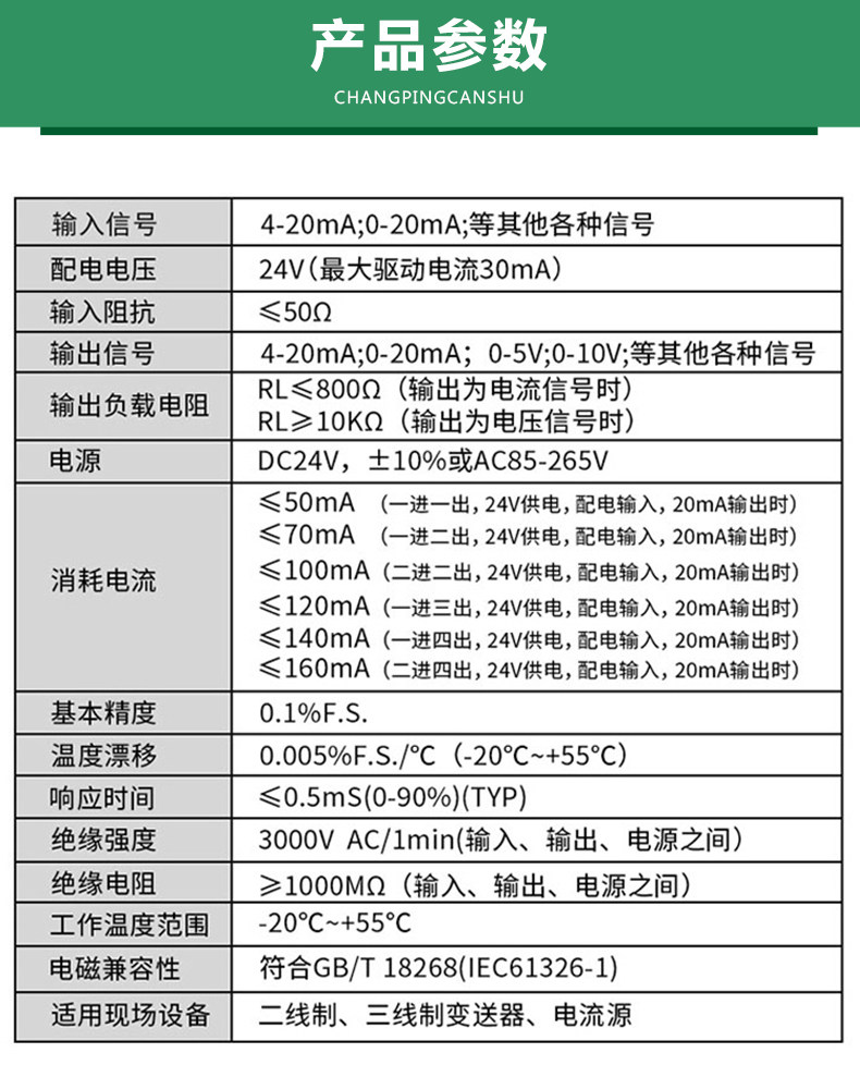 商品名称:国产 PR-112-7GG-LP直流信号隔离器一进二出4-20mA转换模块