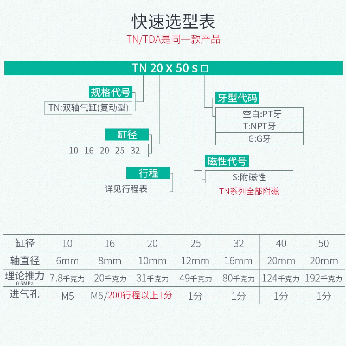 商品名称:双杆双轴气缸TDA/TN16x10x20/30/40/50/60/70/80/100/125/150-S