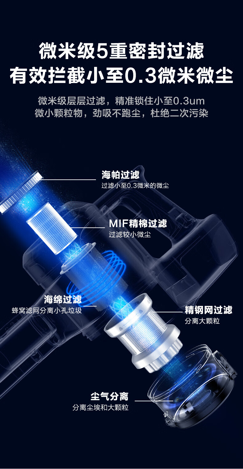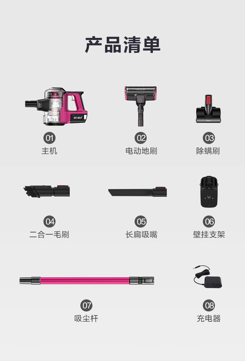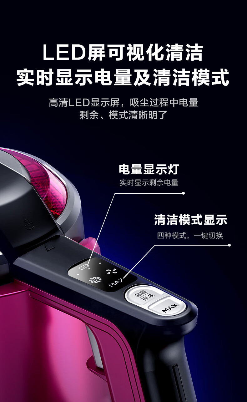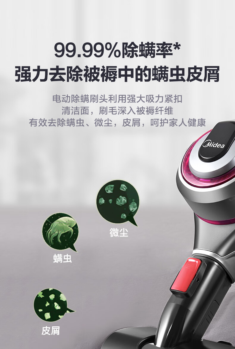 商品名称:美的 无线手持吸尘器家用 LED大屏数显 双电机大功率 99.99%深度除螨仪 车载无绳 配壁挂式充电架 P5S