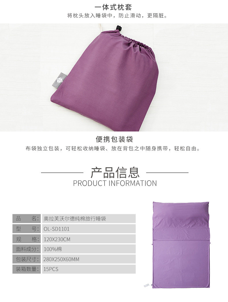 商品名称:OLAF LEGENG 奥拉芙纯棉旅行睡袋 OL-SD1101