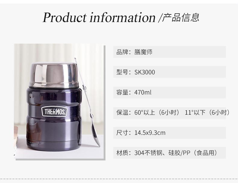 商品名称:膳魔师 高真空不锈钢保温食物罐 红色 470ml SK3000