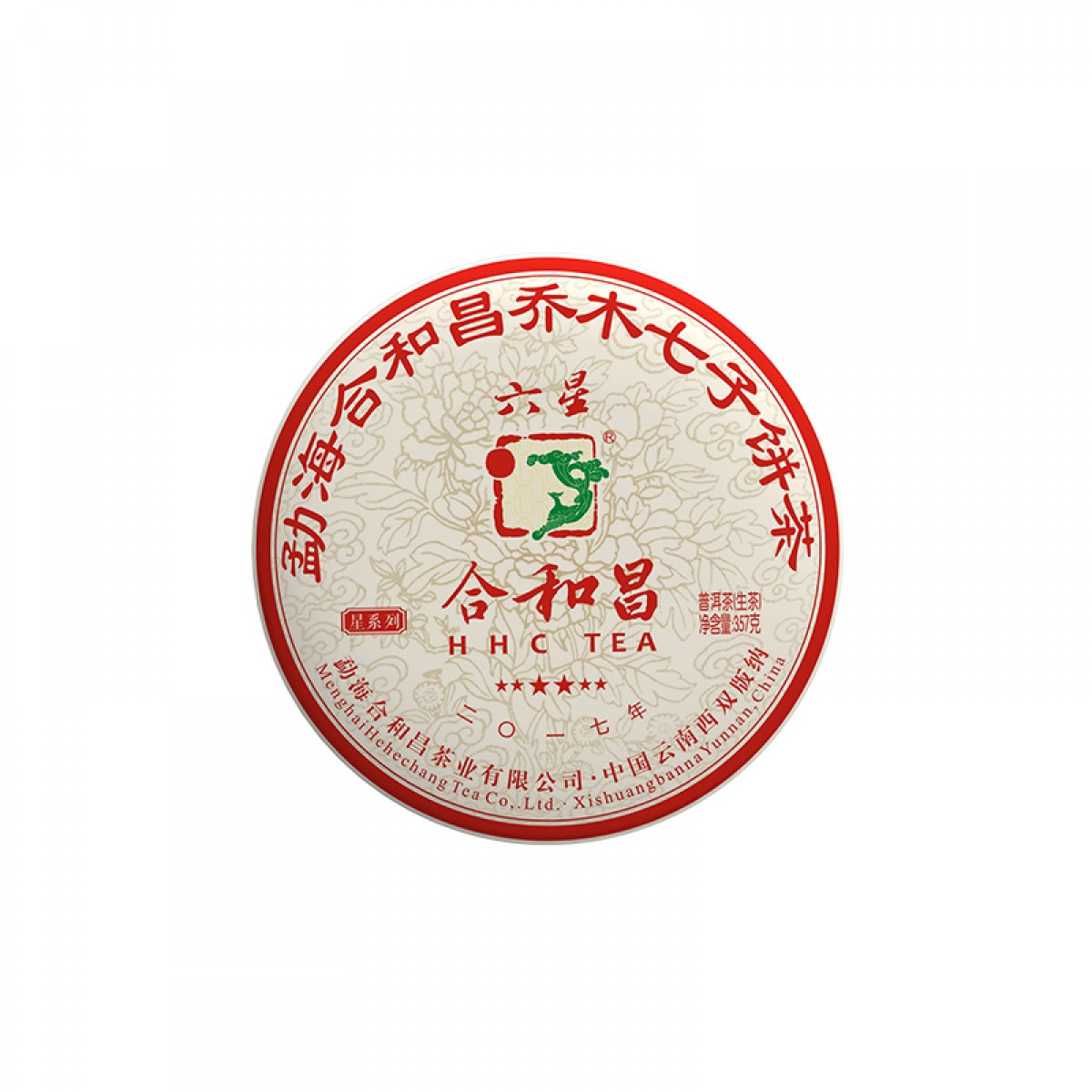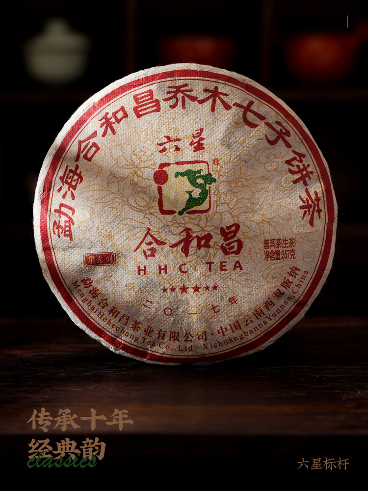 商品名称:2017年合和昌六星 标杆系列普洱生茶357g 布朗乔木七子饼茶古树茶