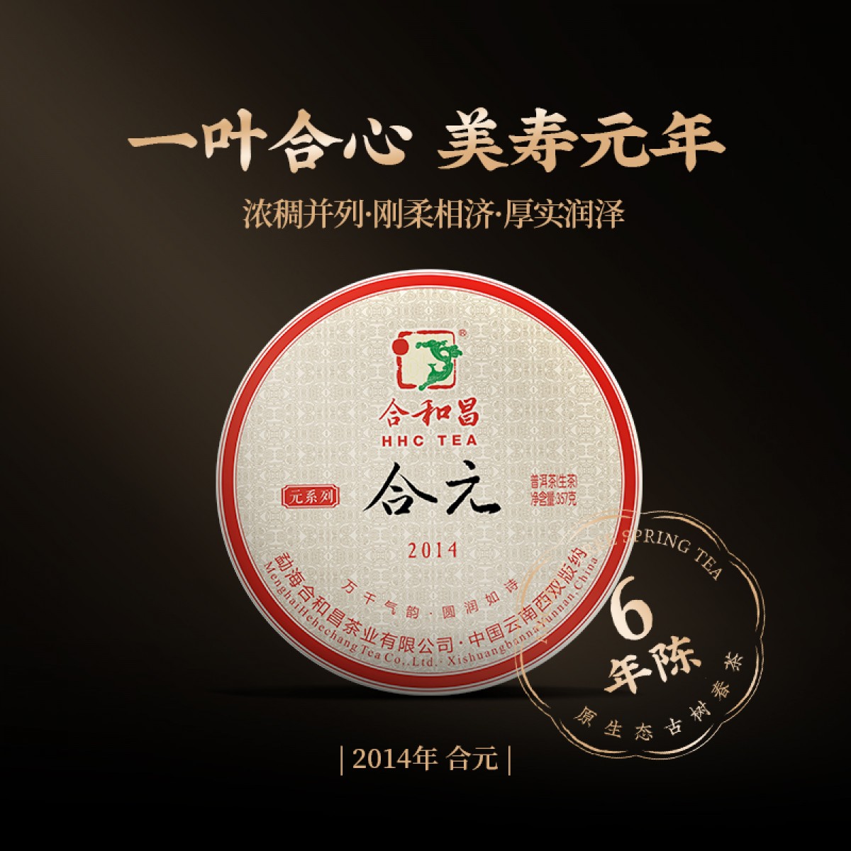 合和昌2014年合元 6年陈香普洱茶生茶357g七子饼茶 布朗古树茶叶