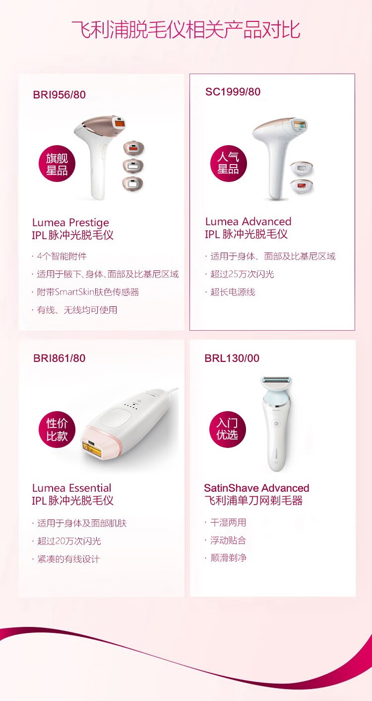 飞利浦(PHILIPS)脱毛仪IPL脉冲光Lumea光子激光脱毛器SC1999/80BBP含科颜氏金盏花水
