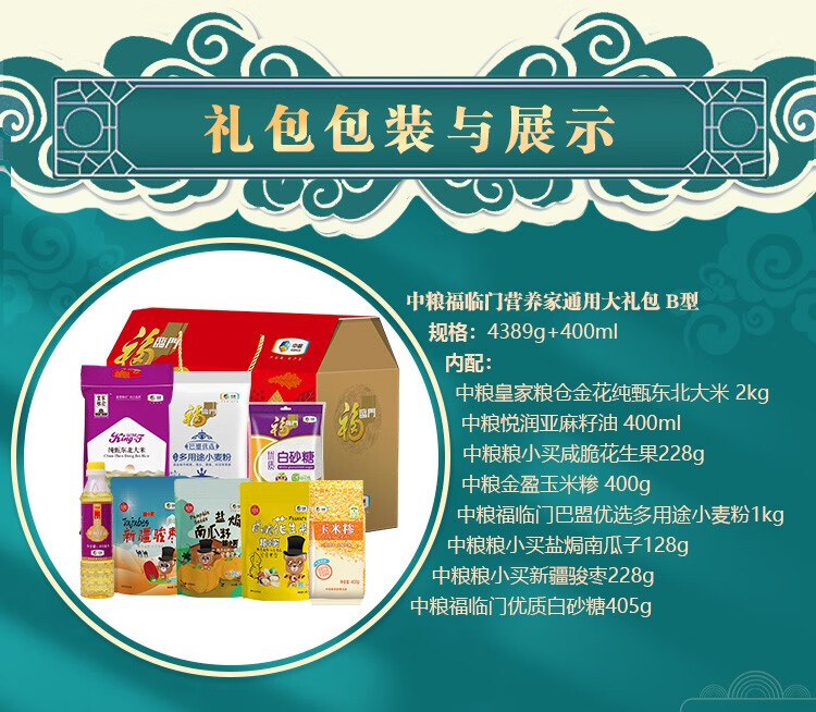 商品名称:中粮 福临门营养家通用大礼包 B型 4389g+400ml