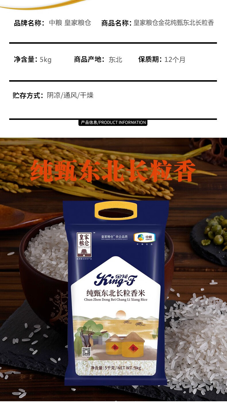 商品名称:中粮 皇家粮仓纯甄东北长粒香米 5kg