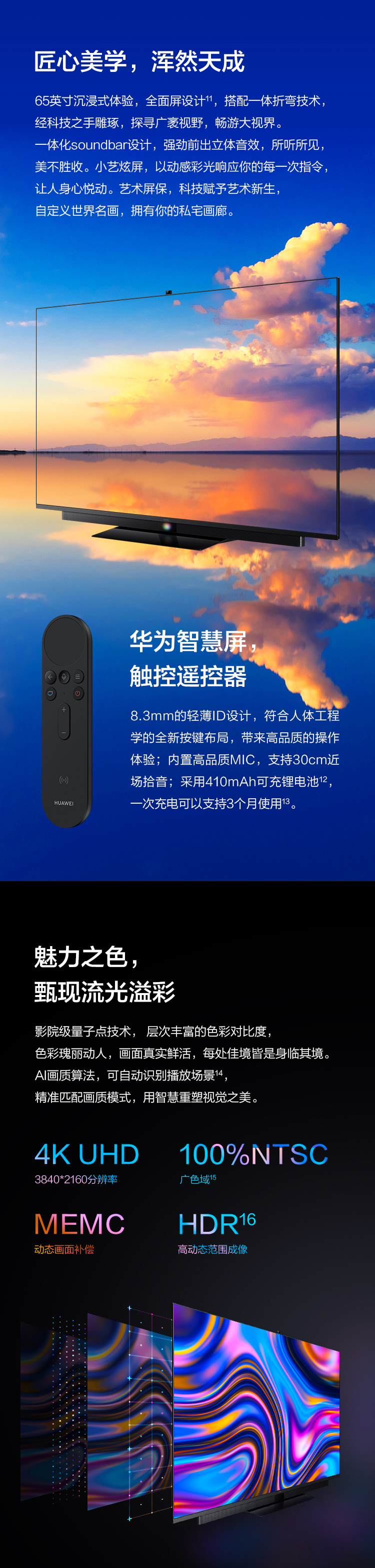 商品名称:华为(HUAWEI)HEGE-560 65英寸4K超高清智慧屏电视机 有线/无线 3840x2160dpi LED显示屏 二级能效