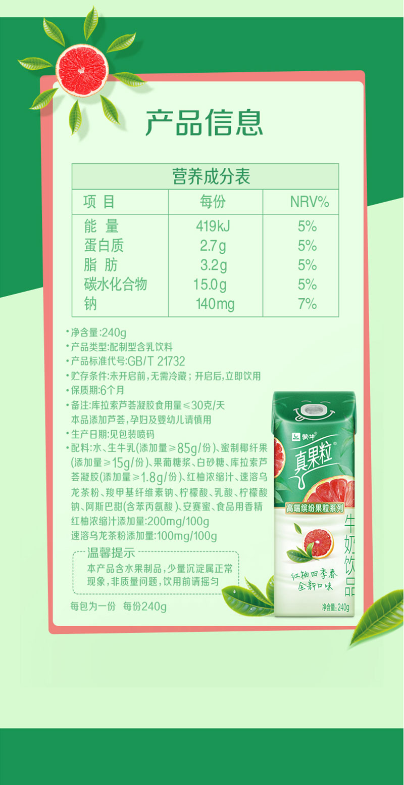 商品名称:蒙牛 真果粒 红柚四季春配制型含乳饮料240g×12礼盒装