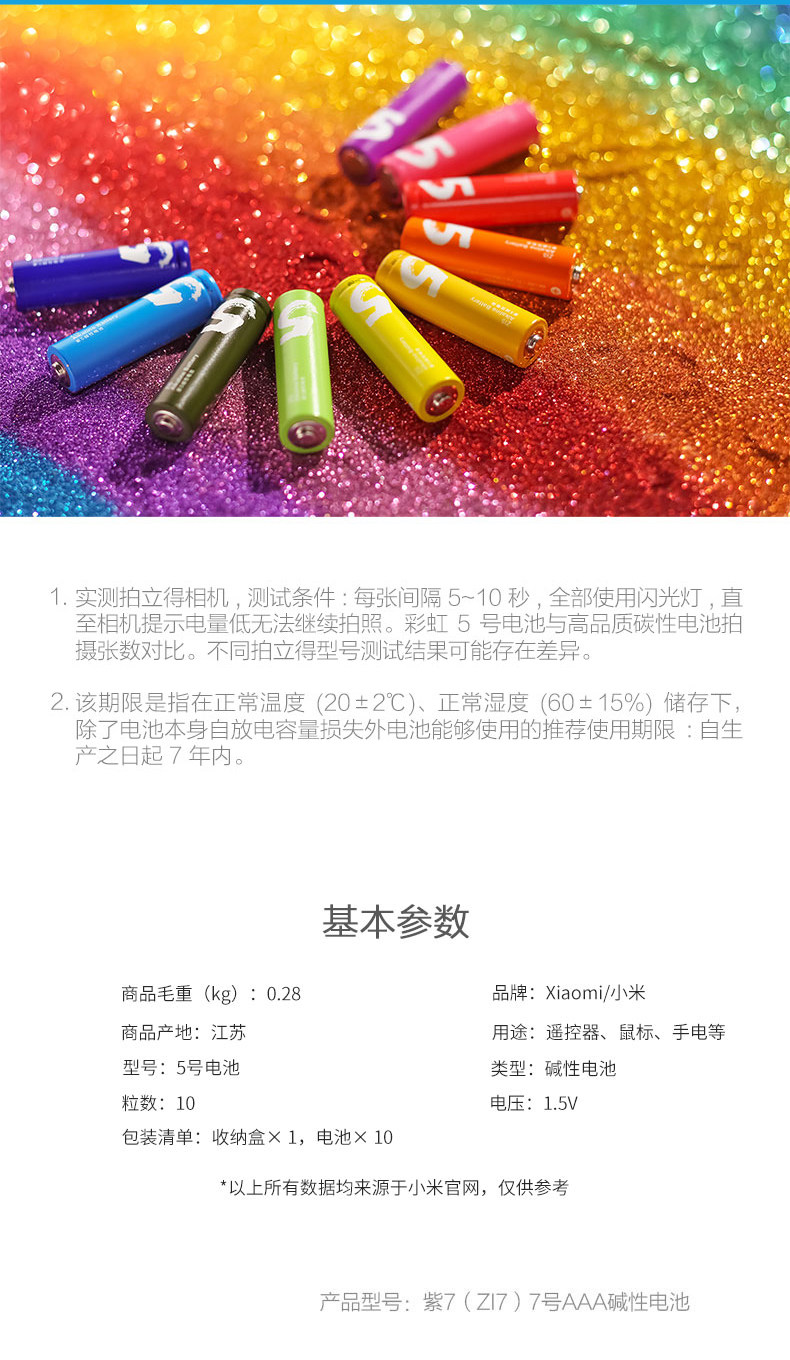 商品名称:小米 彩虹5号7号碱性电池五号七号儿童玩具电池批发遥控器鼠标