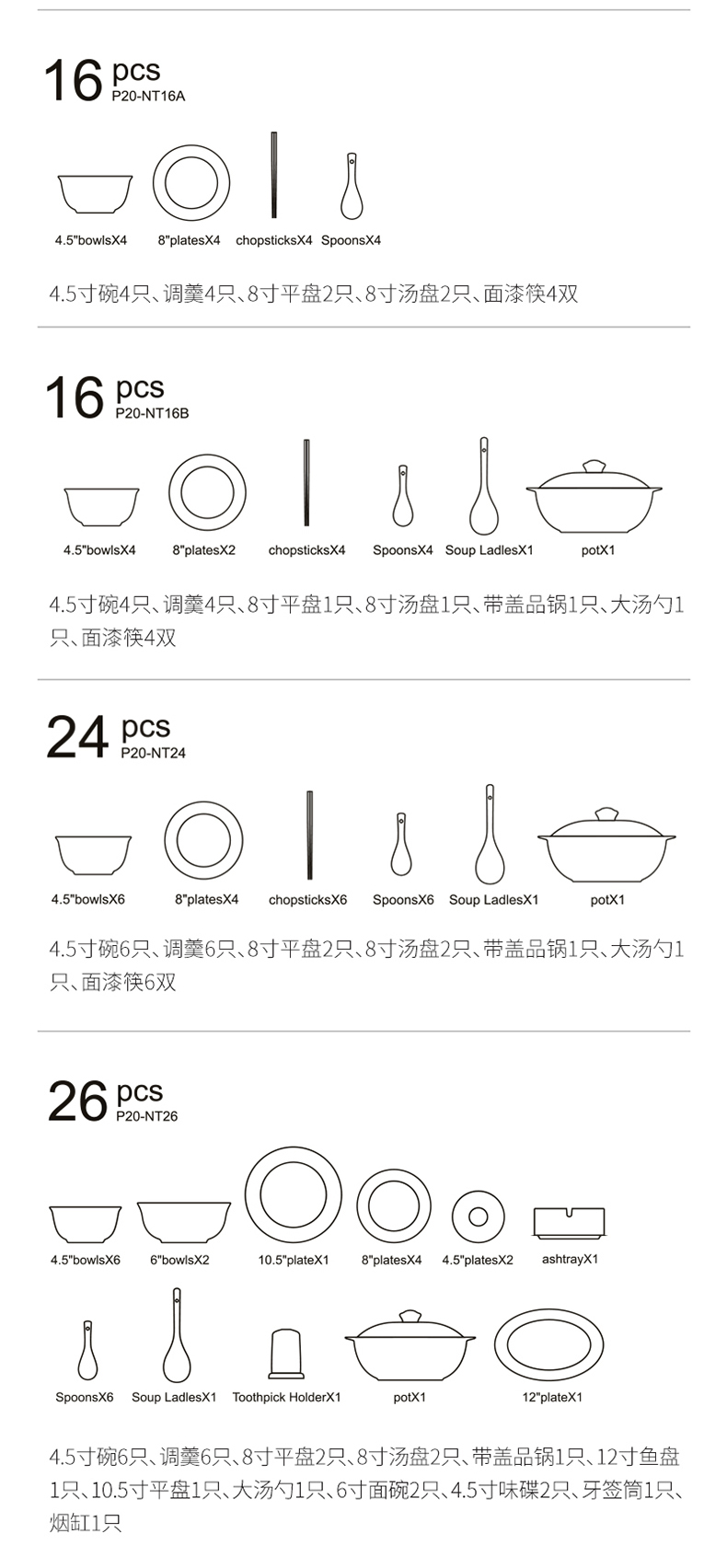 商品名称:毕加索Dora 中餐具16头B P20-NT16B